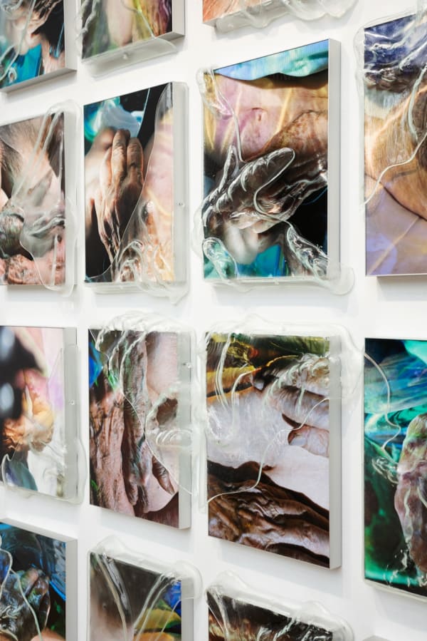 Pour l’exposition « Bouche » à la galerie Hors-Cadre, l’artiste poursuit son travail sur les beautés terrifiantes et comestibles qu’offrent le corps et les objets organiques de son environnement familier, dans une dimension toujours plus sculpturale. L’artiste investit le verre pour créer des formes excentriques qui oblitèrent la surface même de ses close-ups photographiques.